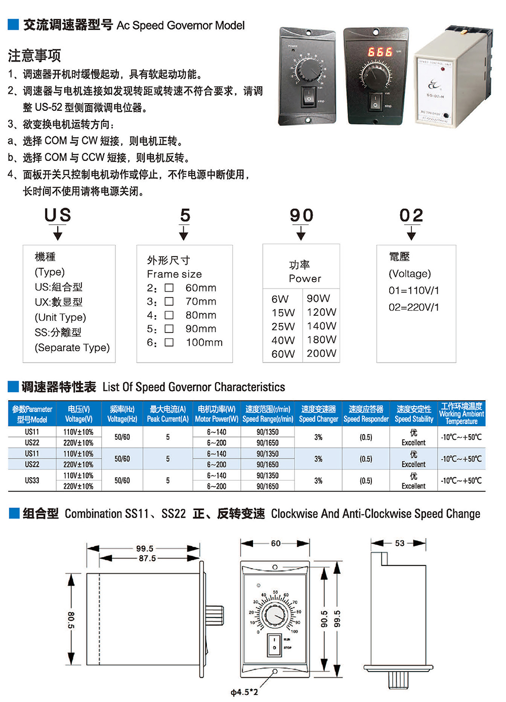 2、调速器与电机连接如发现转距或转速不符合要求,请调整US-52型侧面微调电位器。