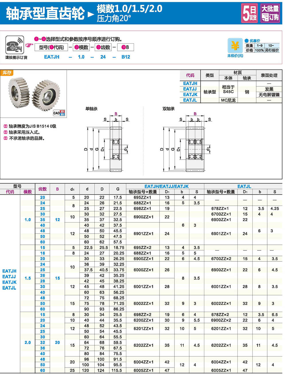 轴承型齿轮