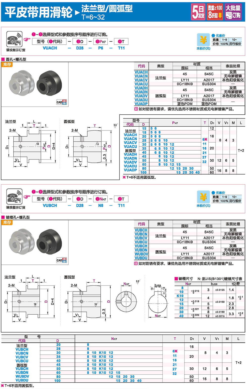 滑轮惰轮在机械设备中与平皮带圆皮带配合使用,起到动力传递、输出、过渡、皮带张紧用等,用于皮带张紧时也可称作张紧轮