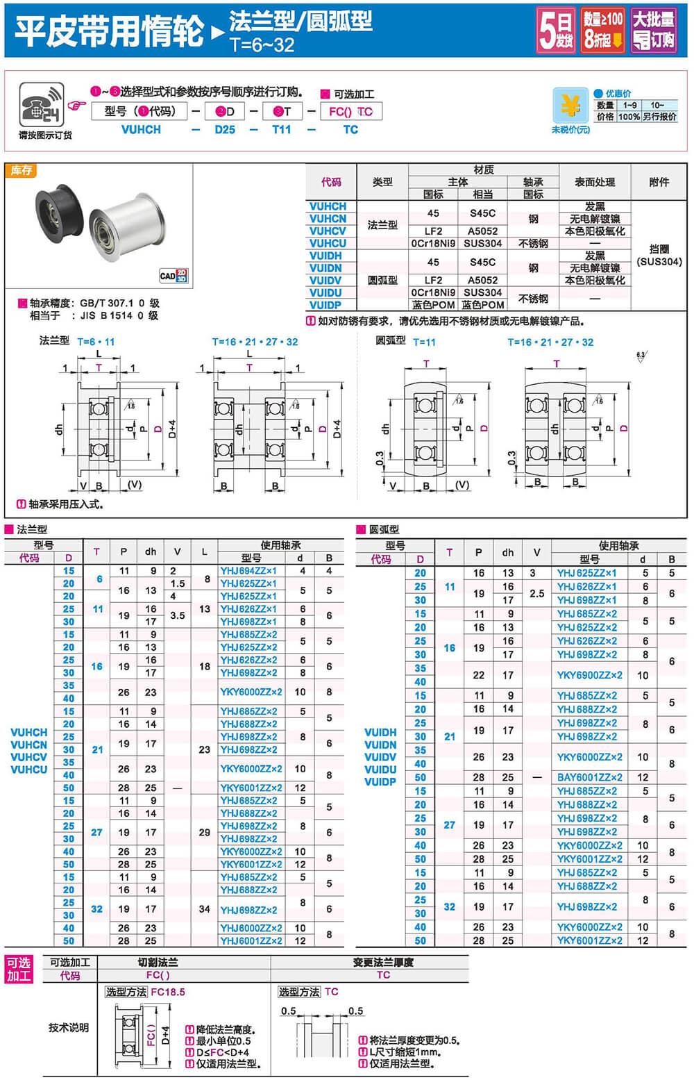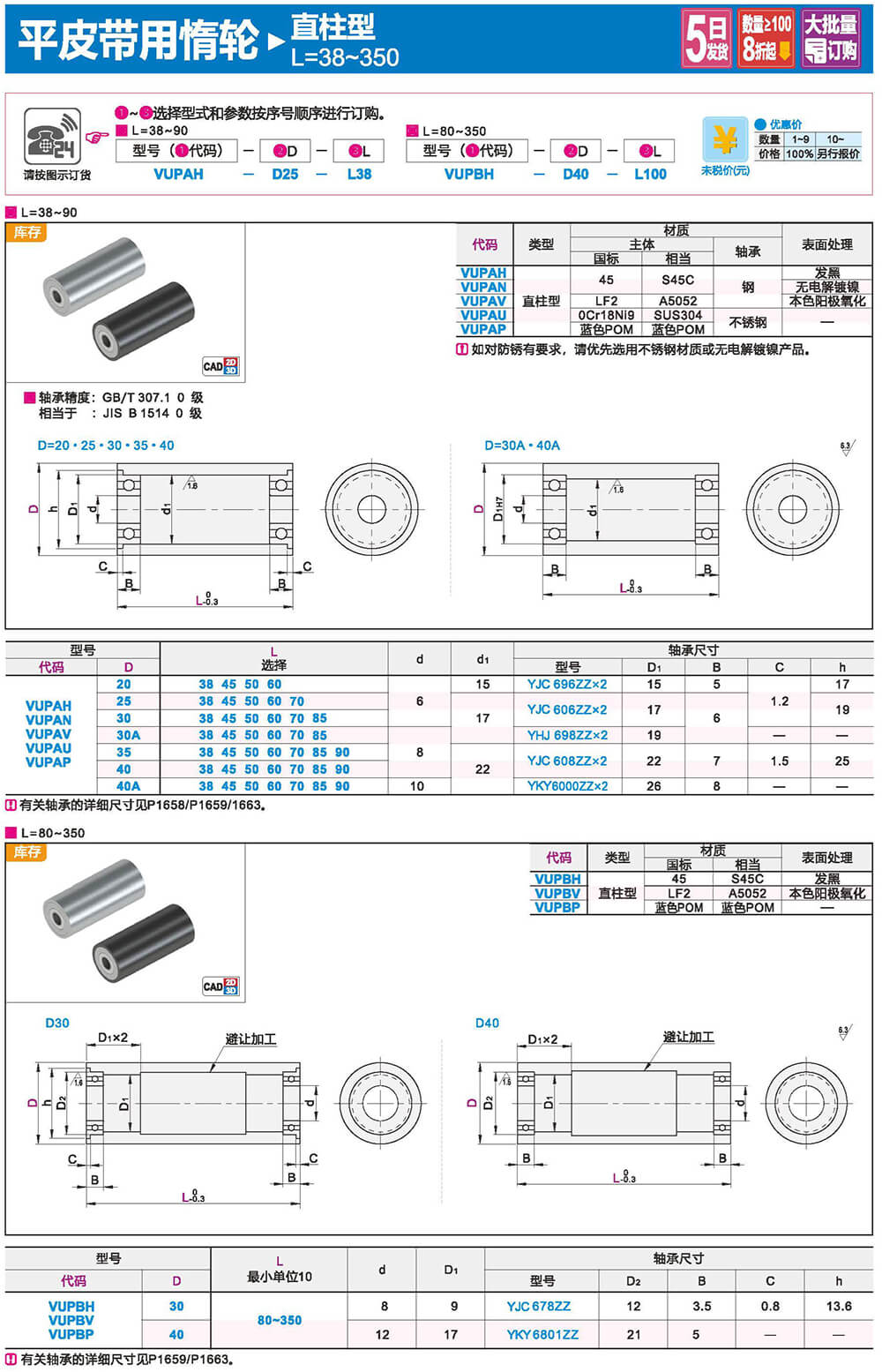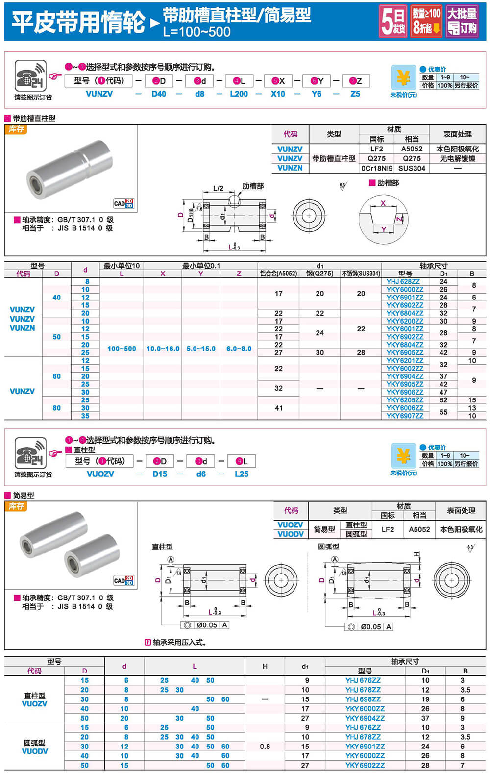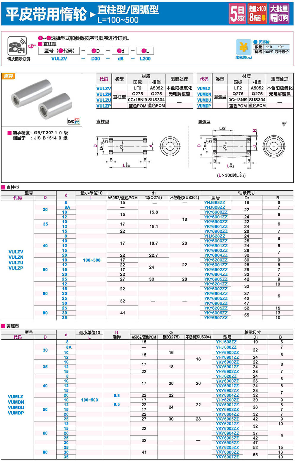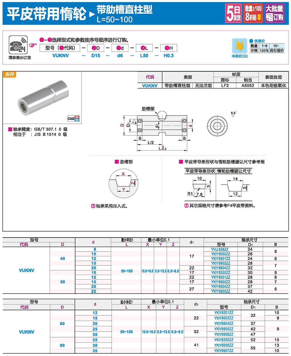 滑轮惰轮在机械设备中与平皮带圆皮带配合使用,起到动力传递、输出、过渡、皮带张紧用等,用于皮带张紧时也可称作张紧轮