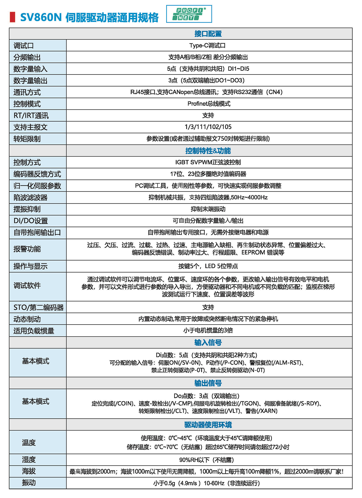 SV860伺服驱动器支持PROFINET总线通讯,可与西门子支持PROFINET通讯的PLC完美适配,支持13/111/102/105号报文以及西门子750辅助报文稿,支持RT实时通讯和IRT等实时通讯。