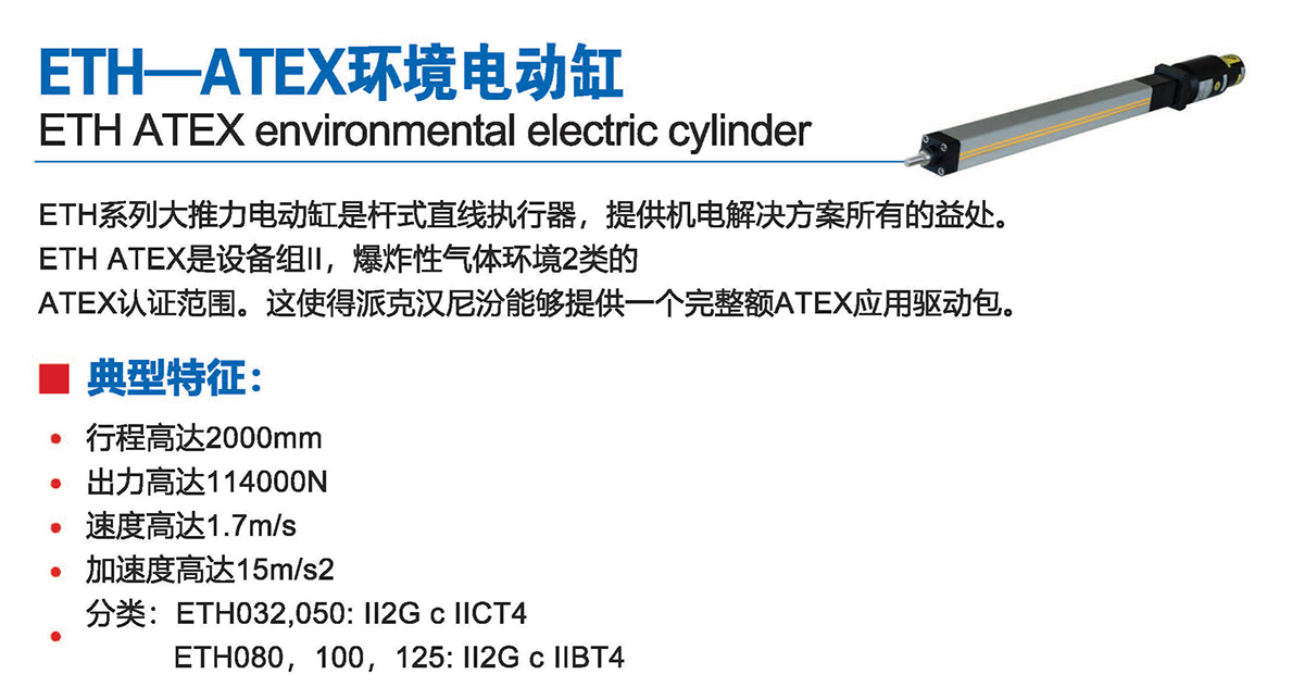 ETH系列大推力电动缸是杆式直线执行器,提供机电解决方案所有的益处。