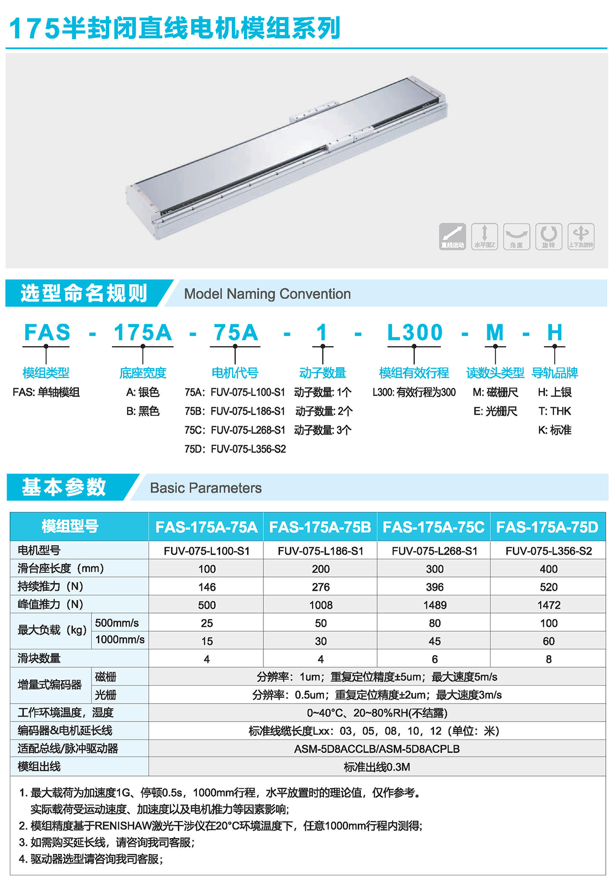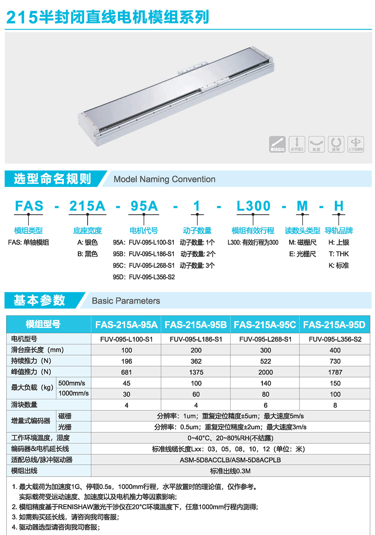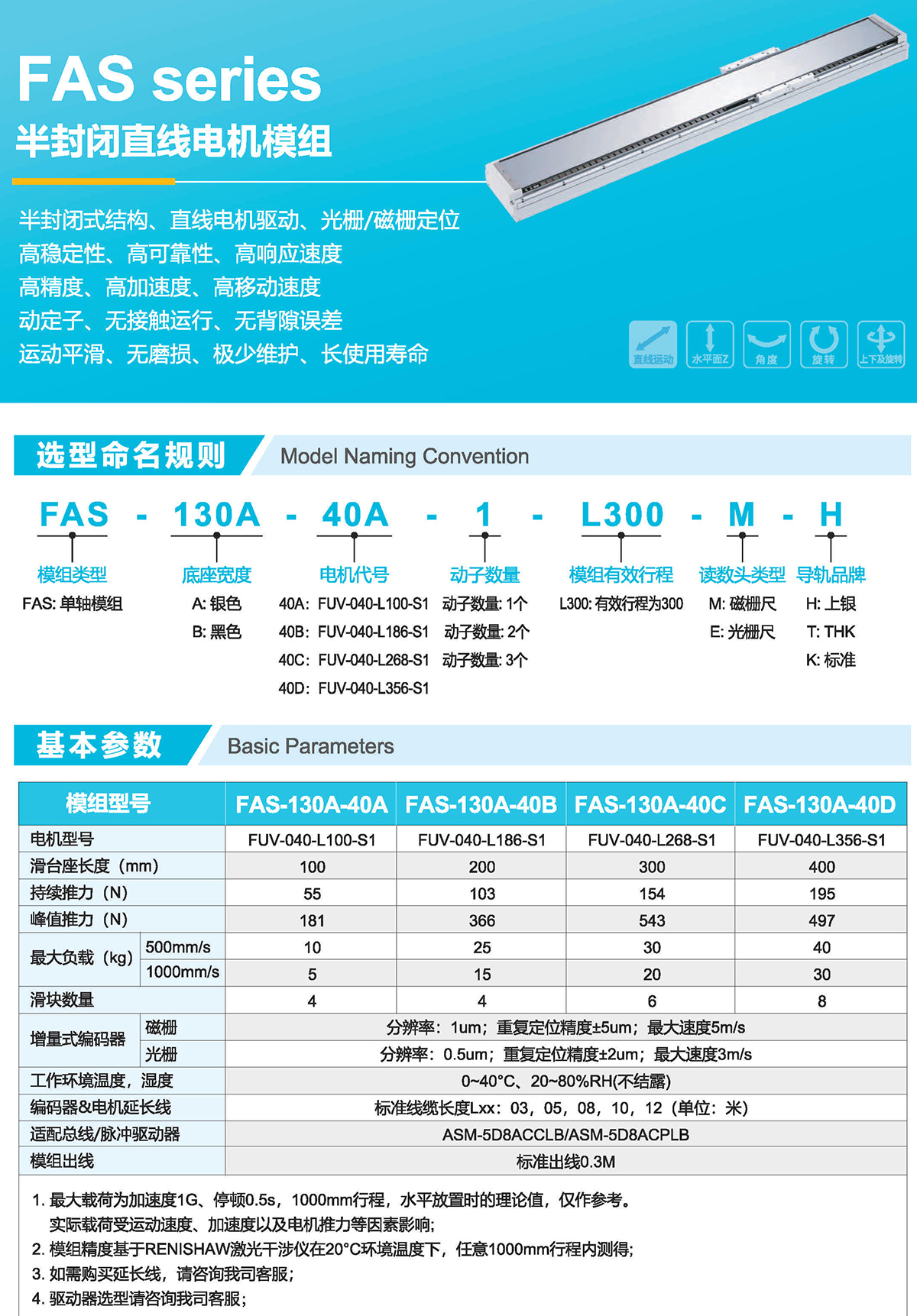 半封闭式结构、直线电机驱动、光栅/磁栅定位