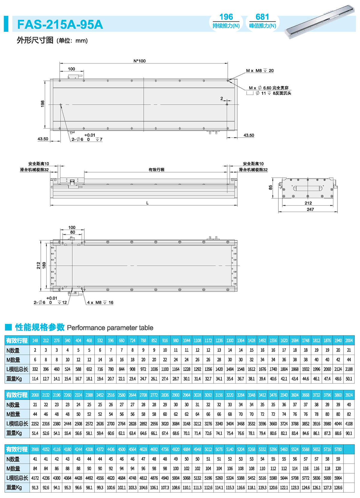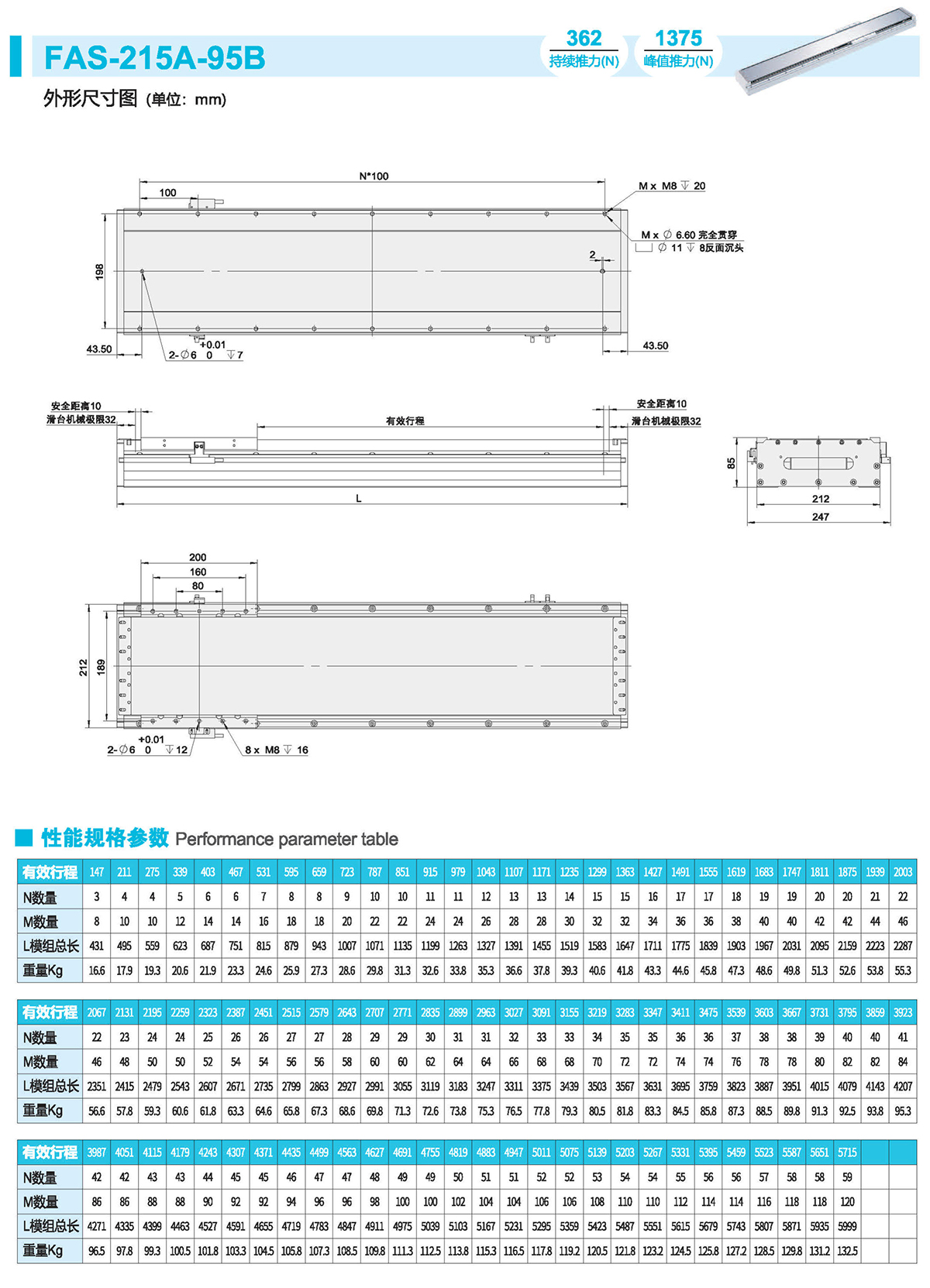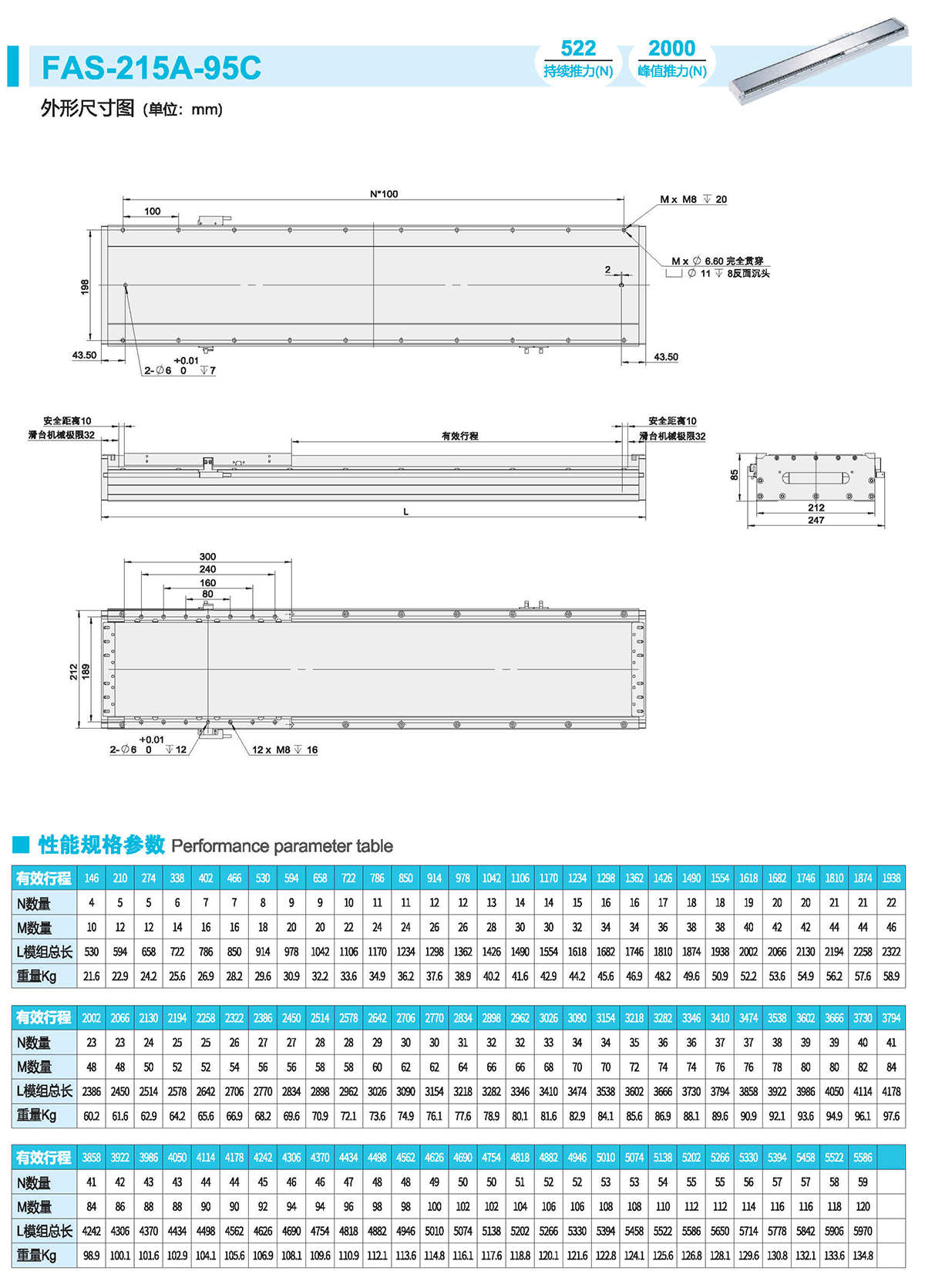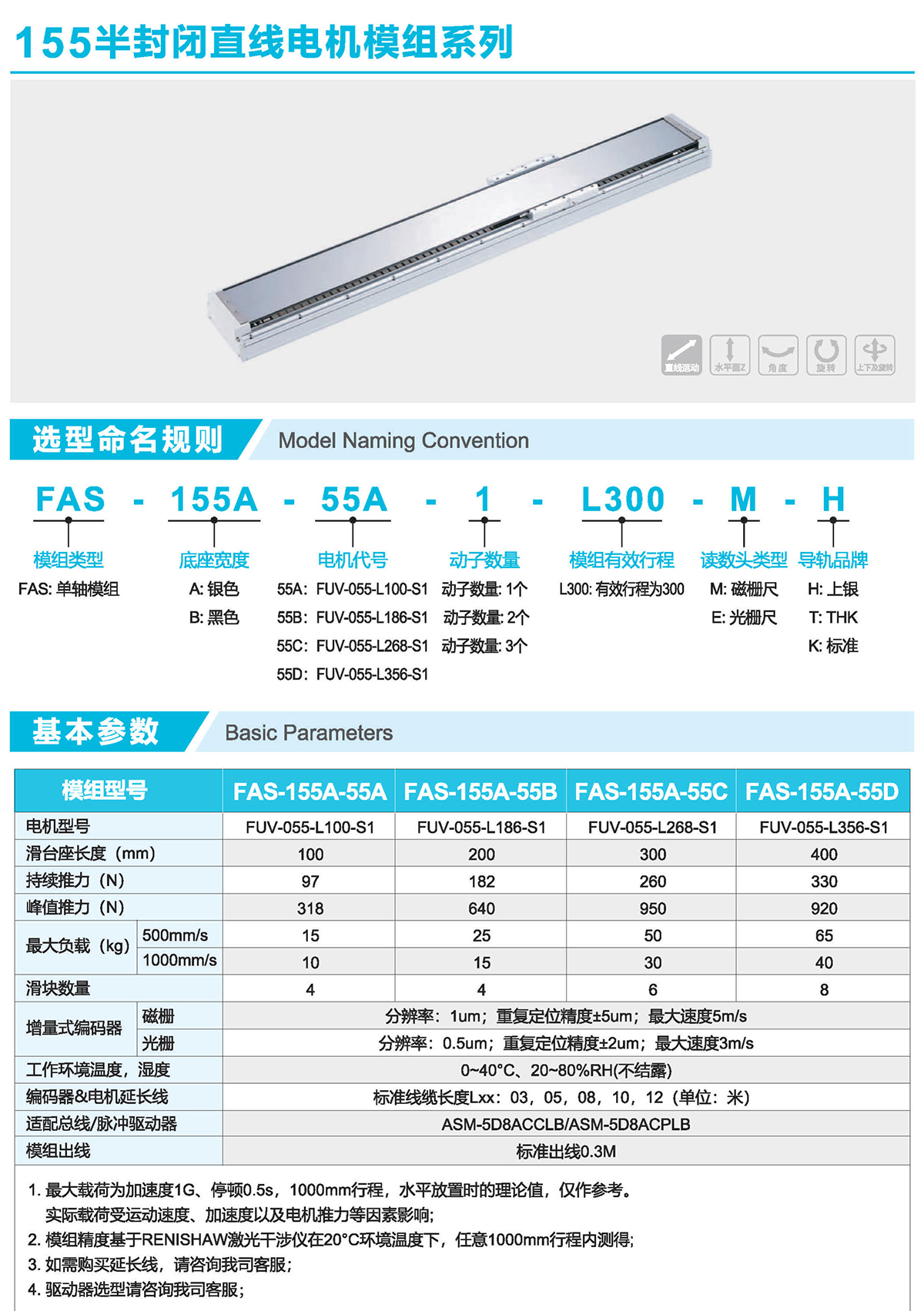 半封闭式结构、直线电机驱动、光栅/磁栅定位