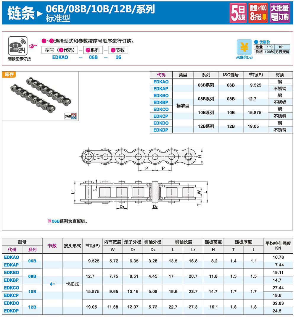 链传动有许多优点:与带传动相比,无弹性滑动和打渭现象,平均传动比准确,工作可靠,效率高;传递功率大,过载能力强,相同工况下的传动尺寸小:所需张紧为小,作用于轴上的压力小,能在高温、潮湿、多尘、有污染等恶劣环境中工作。链传动的缺点主要有:仅能用于两平行轴间的传动,成本高,易磨损,易伸长,传动平稳性差,运转时会产生附加动载荷、振动、冲击和噪声,不宜用在急速反向的传动中。链条:链条长度以链节数来表示。链节数最好取为偶数,以便链条联成环形时正好是外链板与内链板相接,接头处可用弹簧夹或开口销锁紧。若链节数为奇数时,则需采用过渡链节。在链条受拉时,过渡链节还要承受附加的弯曲载荷,通常应避免采用。链轮:链轮轴面齿形两侧呈圆弧状,以便于链节进入和退出啮合。