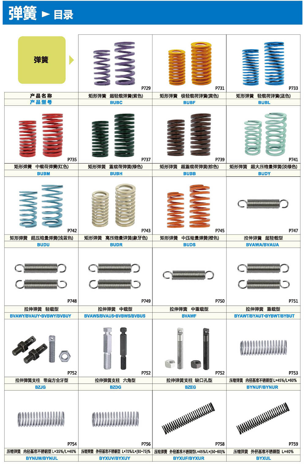 弹簧的种类及特点: