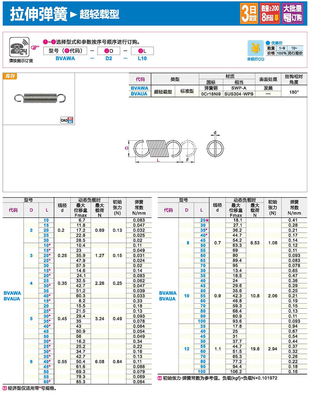 3.拉伸弹簧:是承受轴向拉力的螺旋弹簧,一般用圆截面材料制成。在不承受负载时,拉伸弹簧的圈与圈之间一般都是并紧的,没有间隙。