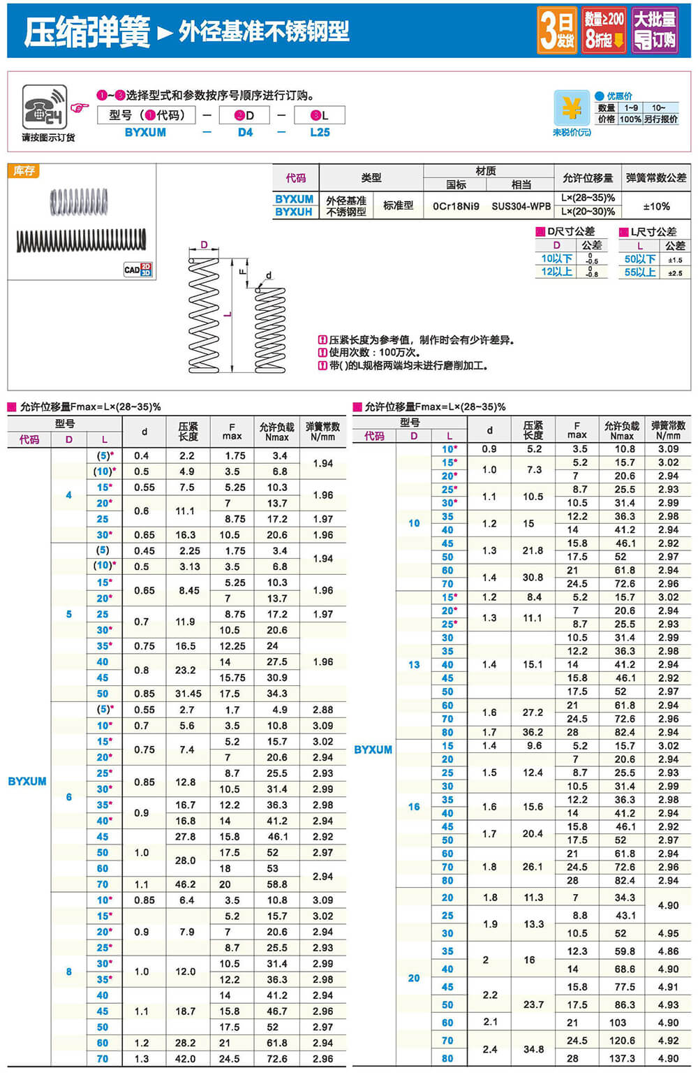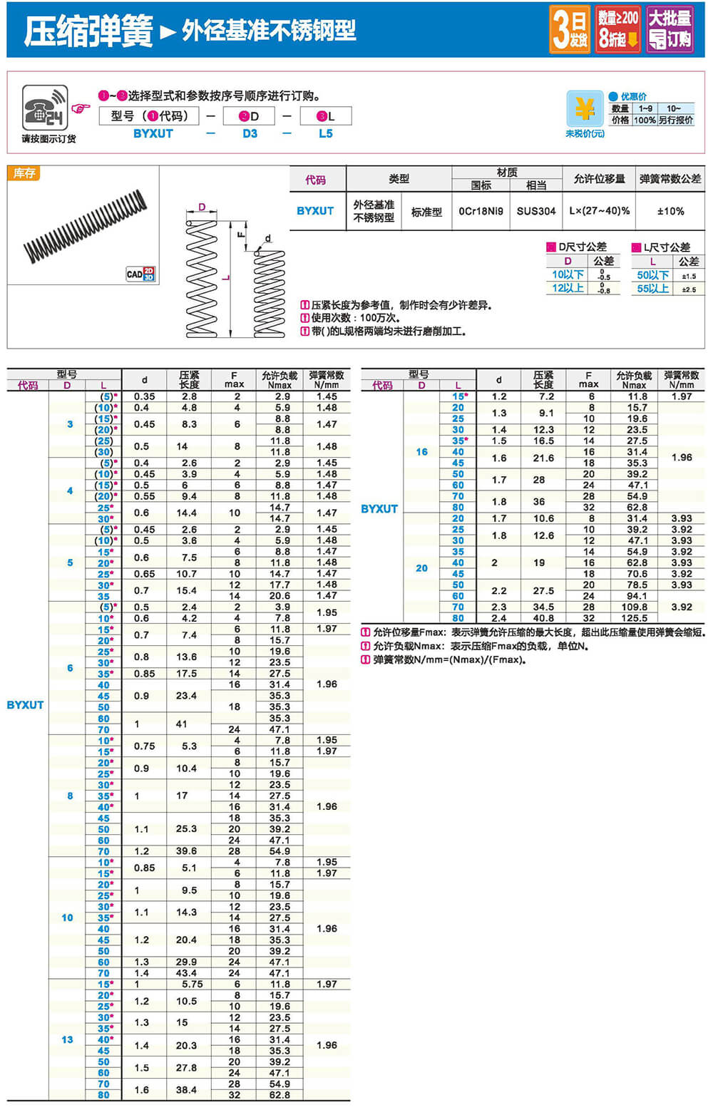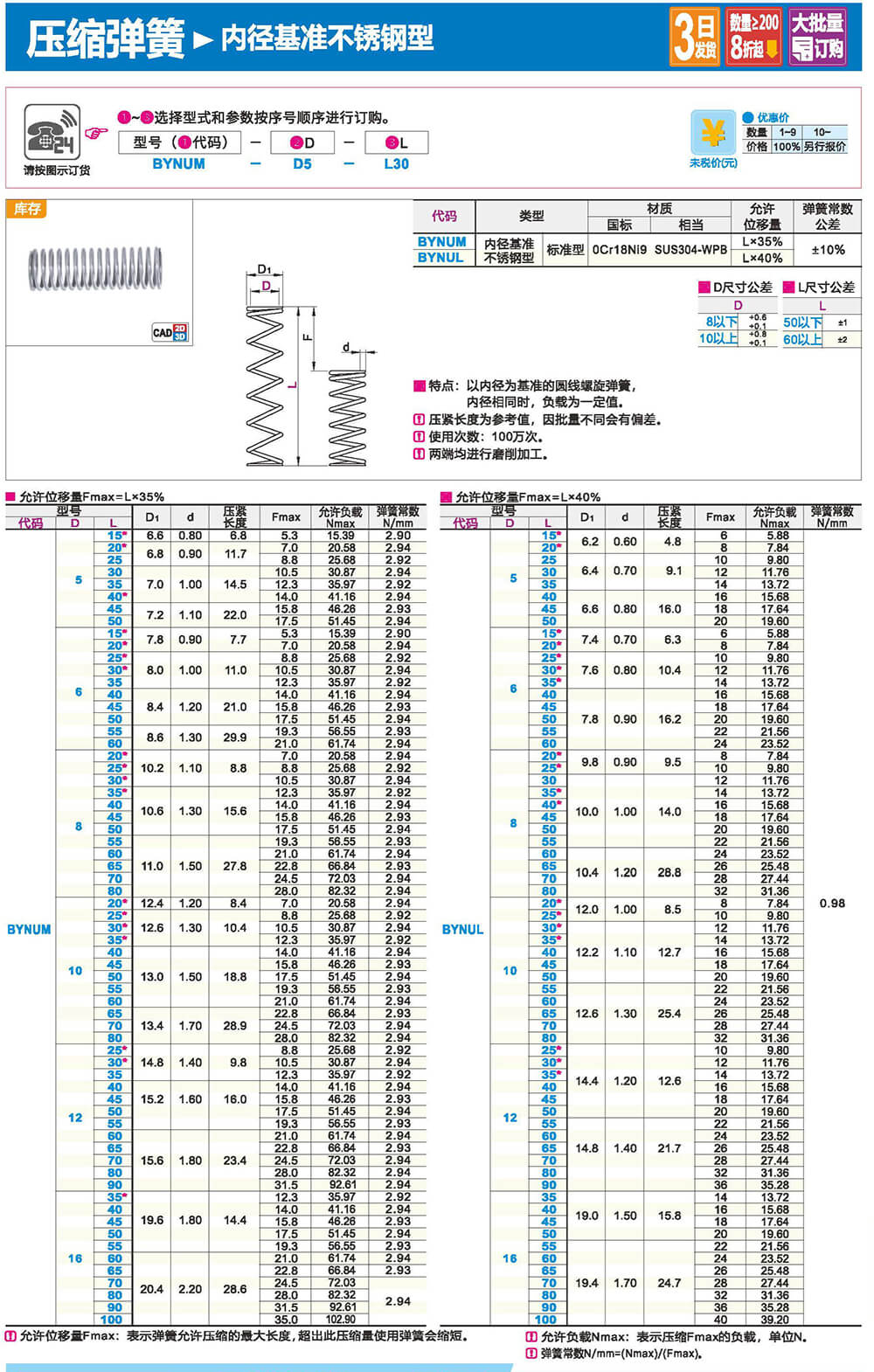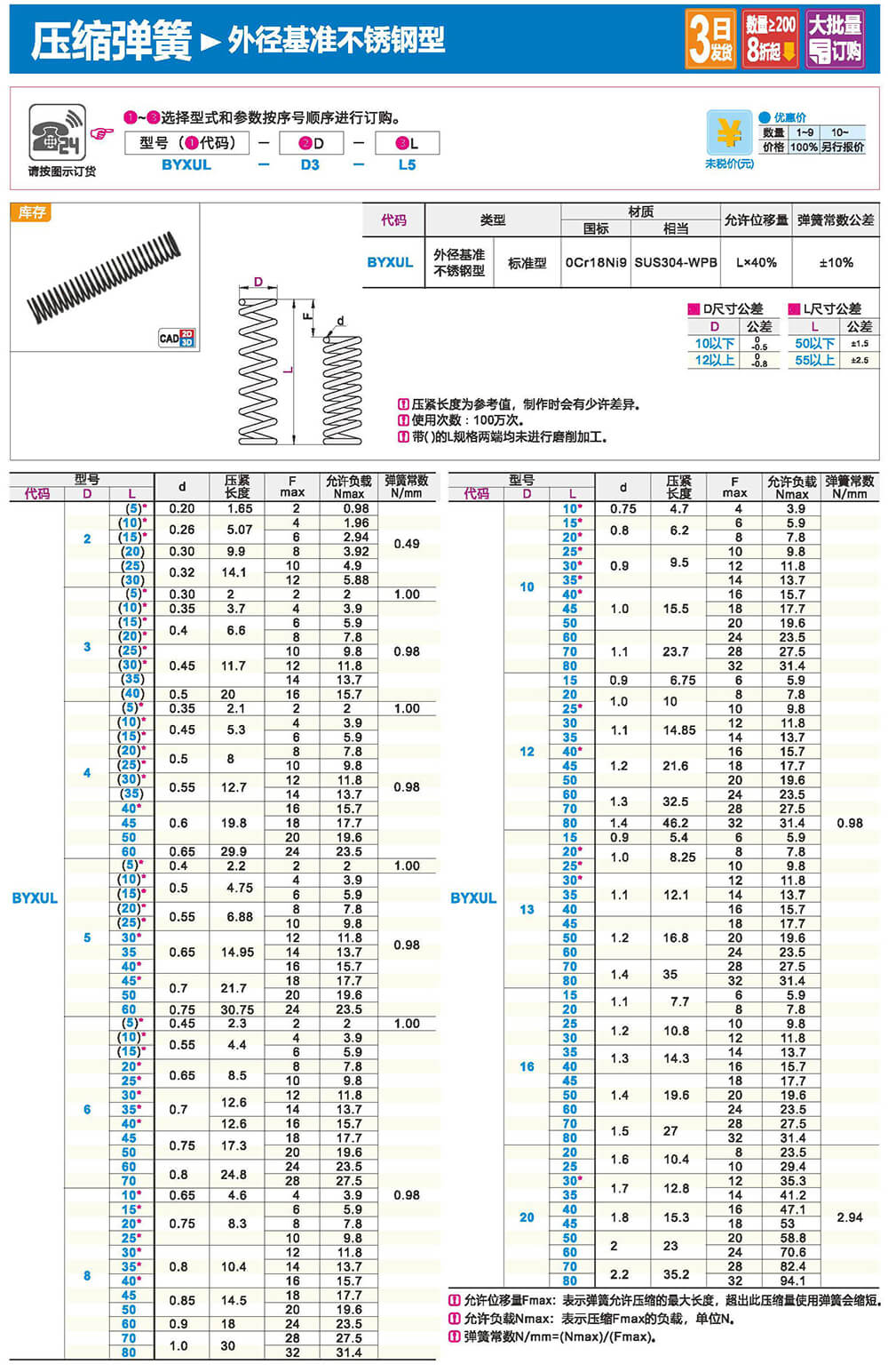 1.圆形截面压缩弹簧:是承受轴向压力的螺旋弹簧,它所用的材料截面为圆形。一般为等节距的,压缩弹簧的圈与圈之间有一定间隙,当受到外载荷时弹簧会收缩变形。其刚度稳定,结构简单,制造方便,应用较广。