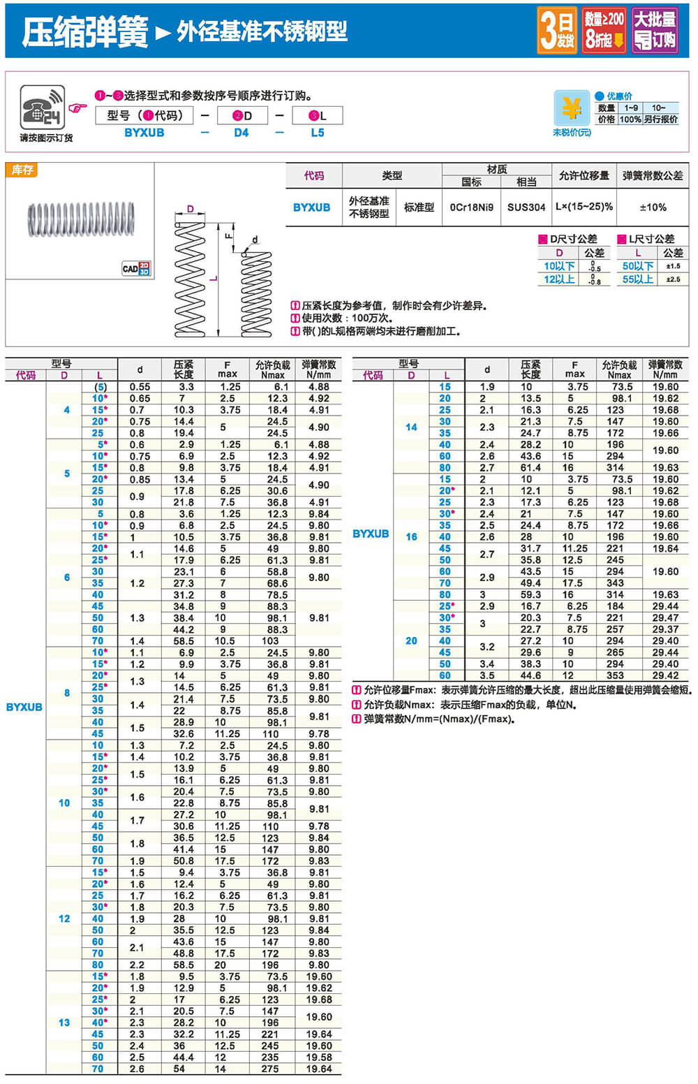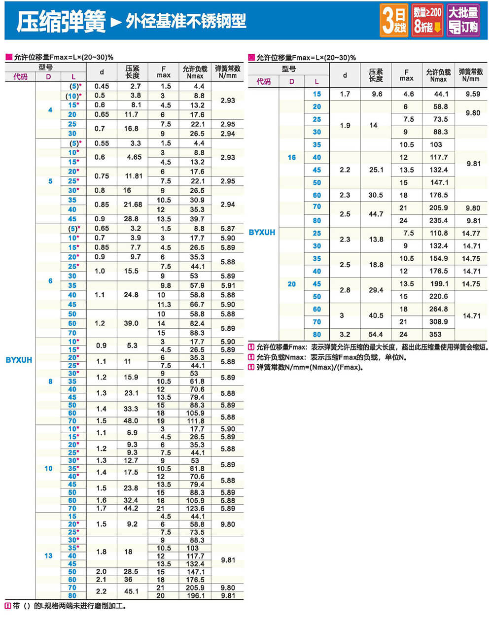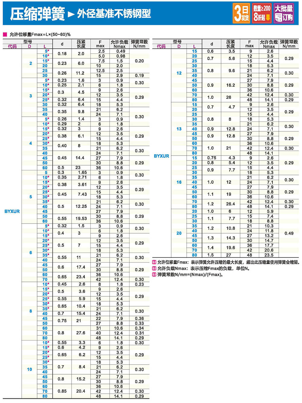 2.矩形截面压缩弹簧:性质和圆形截面圆柱螺旋弹簧相似,区别在于它所用的材料截面为矩形。在同样空间条件下,矩形截面螺旋压缩弹簧刚度更大,吸收的能量更多。