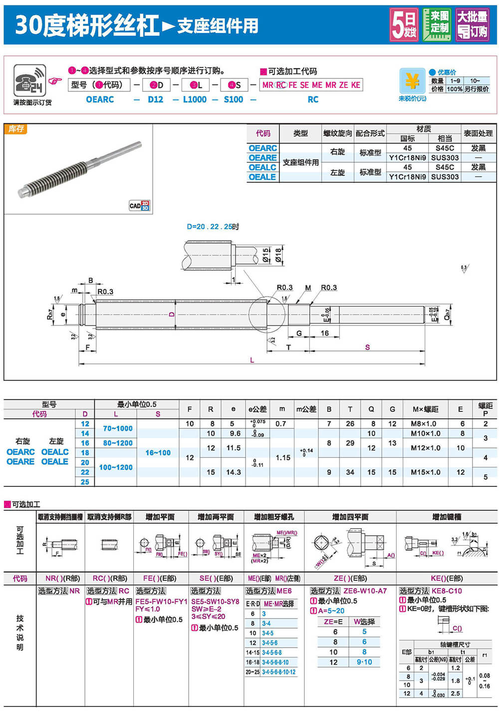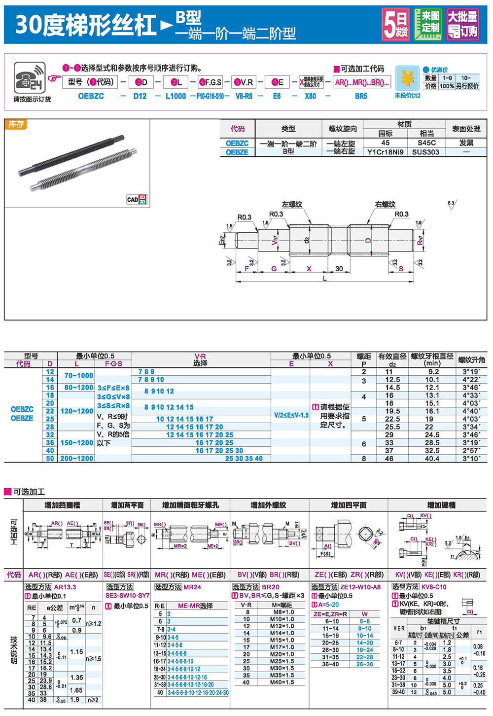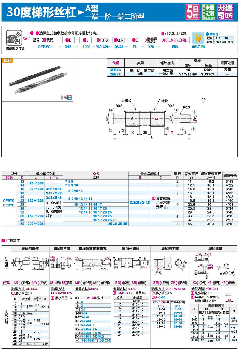 齿形为梯形齿,属于螺旋传动的一种, 通过螺母与螺杆的旋合传递运动和动力,它是将旋转运动变成直线运动。梯形丝杠具有传动效事高、定位准确、承载力大等特点。