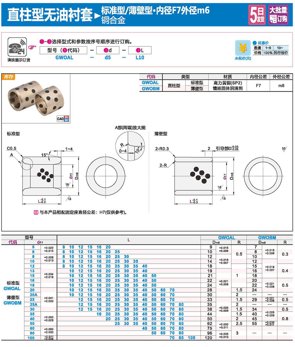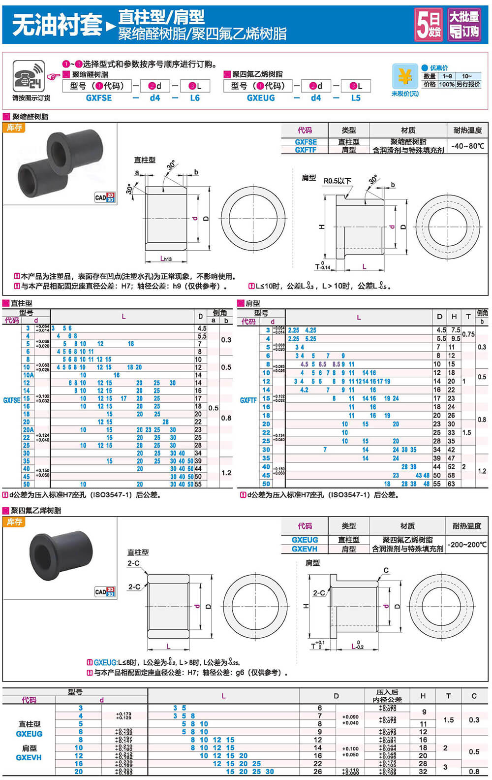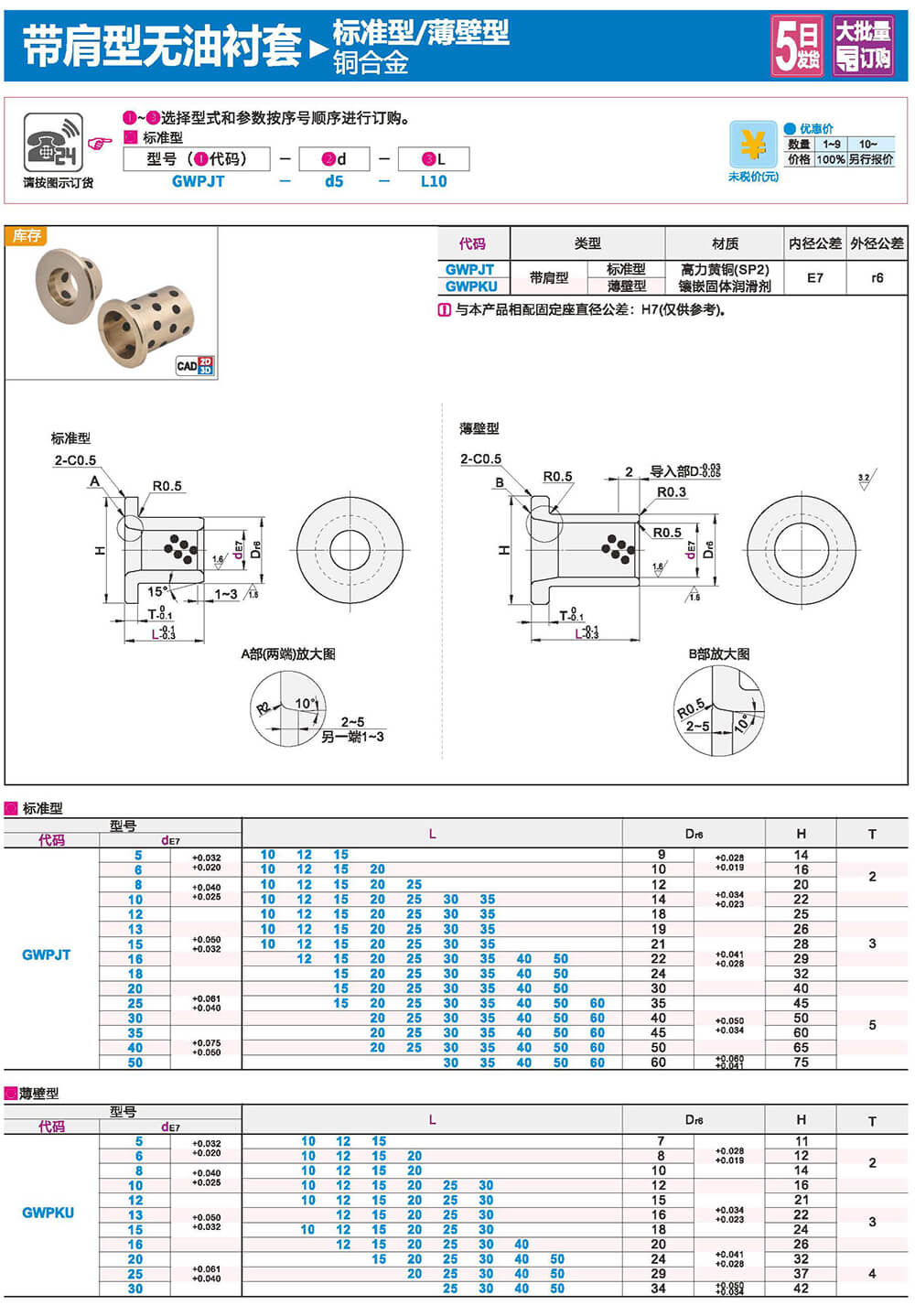 又称为自润滑轴承,是-一种兼有金属轴承特点和无油润滑轴承特点的新颖润滑轴承,由金属基体承受载荷,特殊配方的固体润滑材料起润滑作用。它具有承载能力高,耐冲击,耐高温,自润滑能力强等特点,特别适用于重载,低速,往复或摆动等难以润滑和形成油膜的场合,也不怕水冲和其它酸液的浸蚀和冲刷。目前产品已广泛应用在冶金连铸机、轧刚设备、矿山机械、模具,起重机械.纺织机械、风电发电、船舶、汽轮机、水轮机、注塑机及设备生产流水线中。