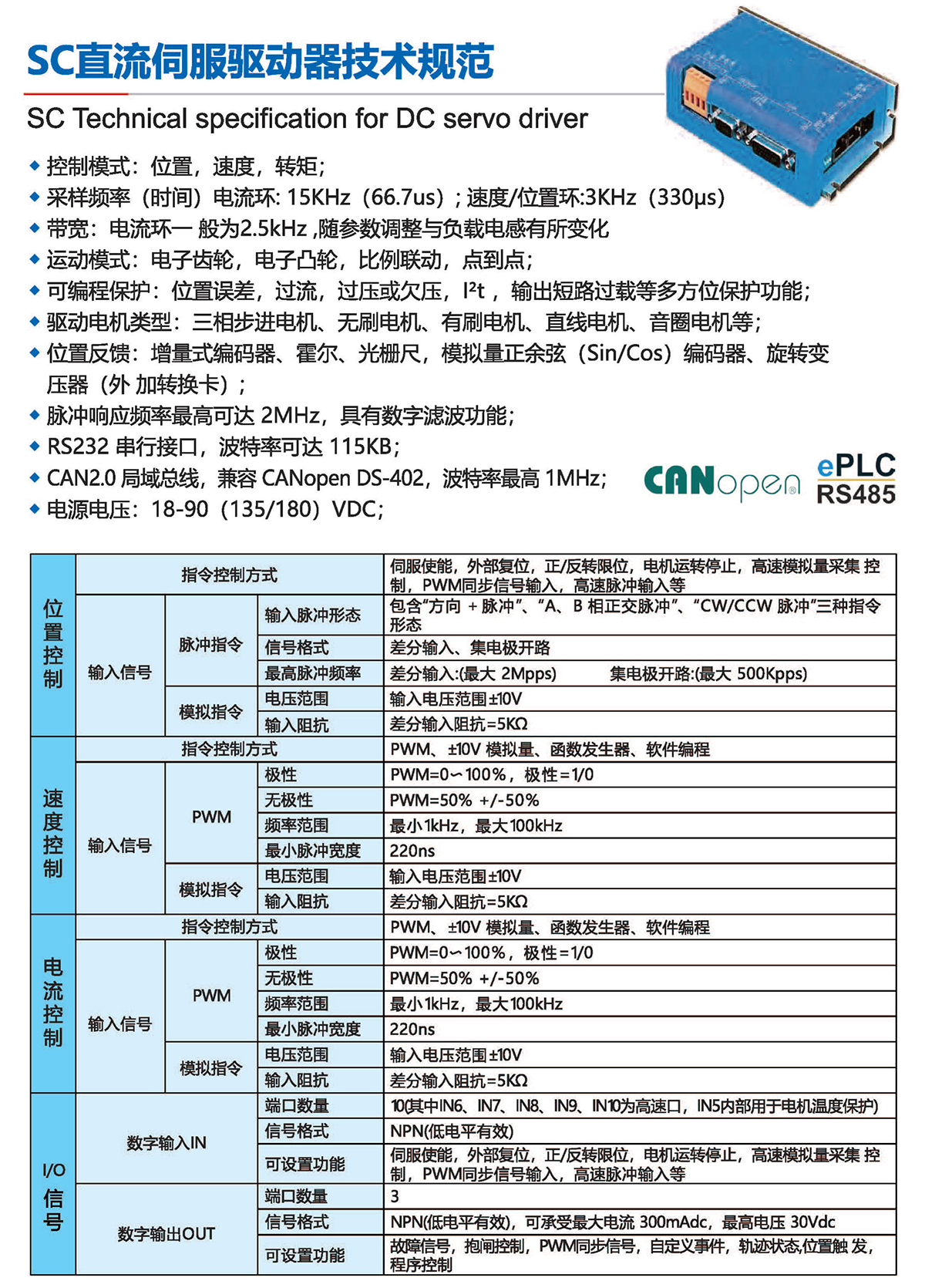 ◆CAN2.0局域总线,兼容CANopen DS 402 ,波特率高1MHz ;