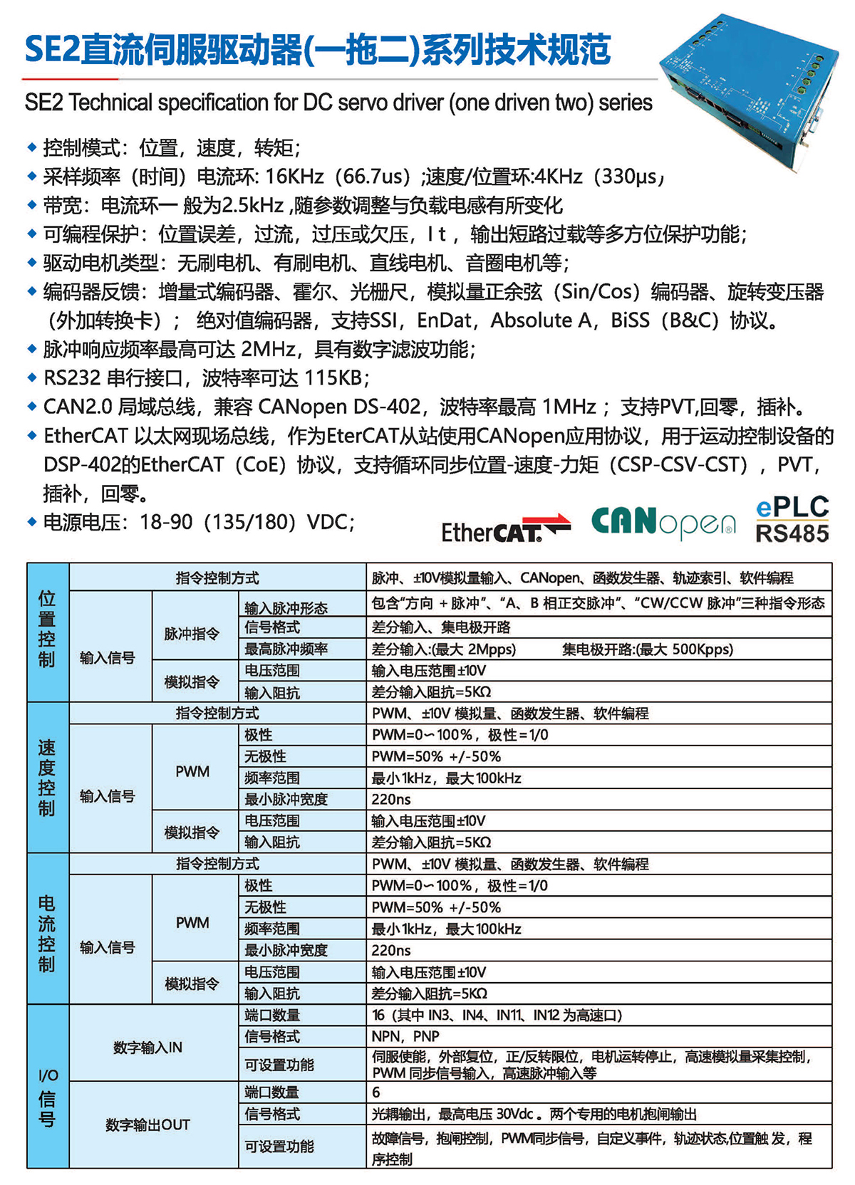 ◆CAN2.0局域总线,兼容CANopen DS 402 ,波特率高1MHz ;