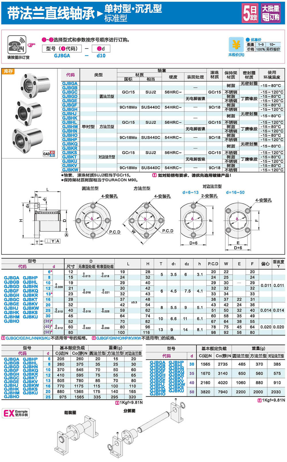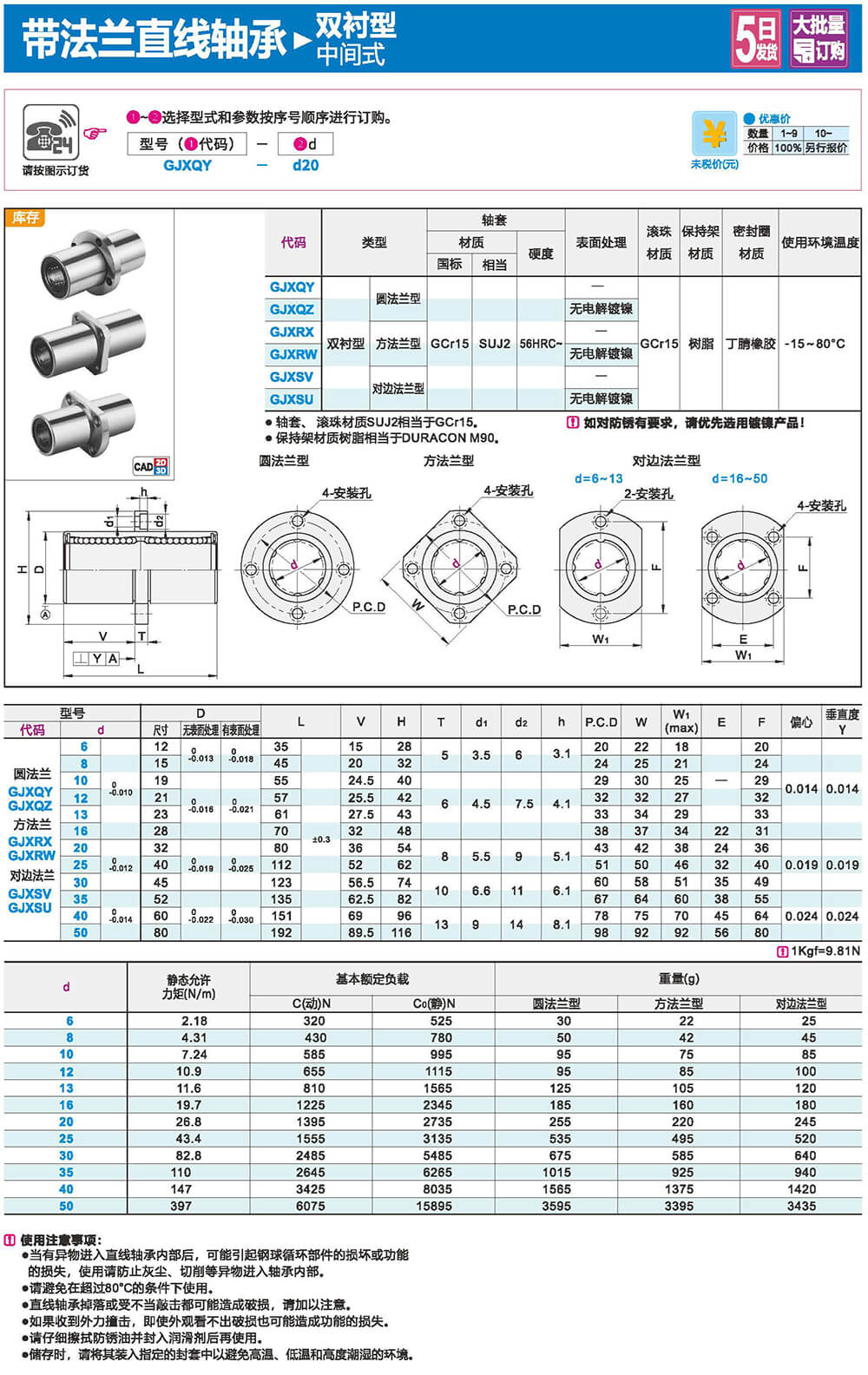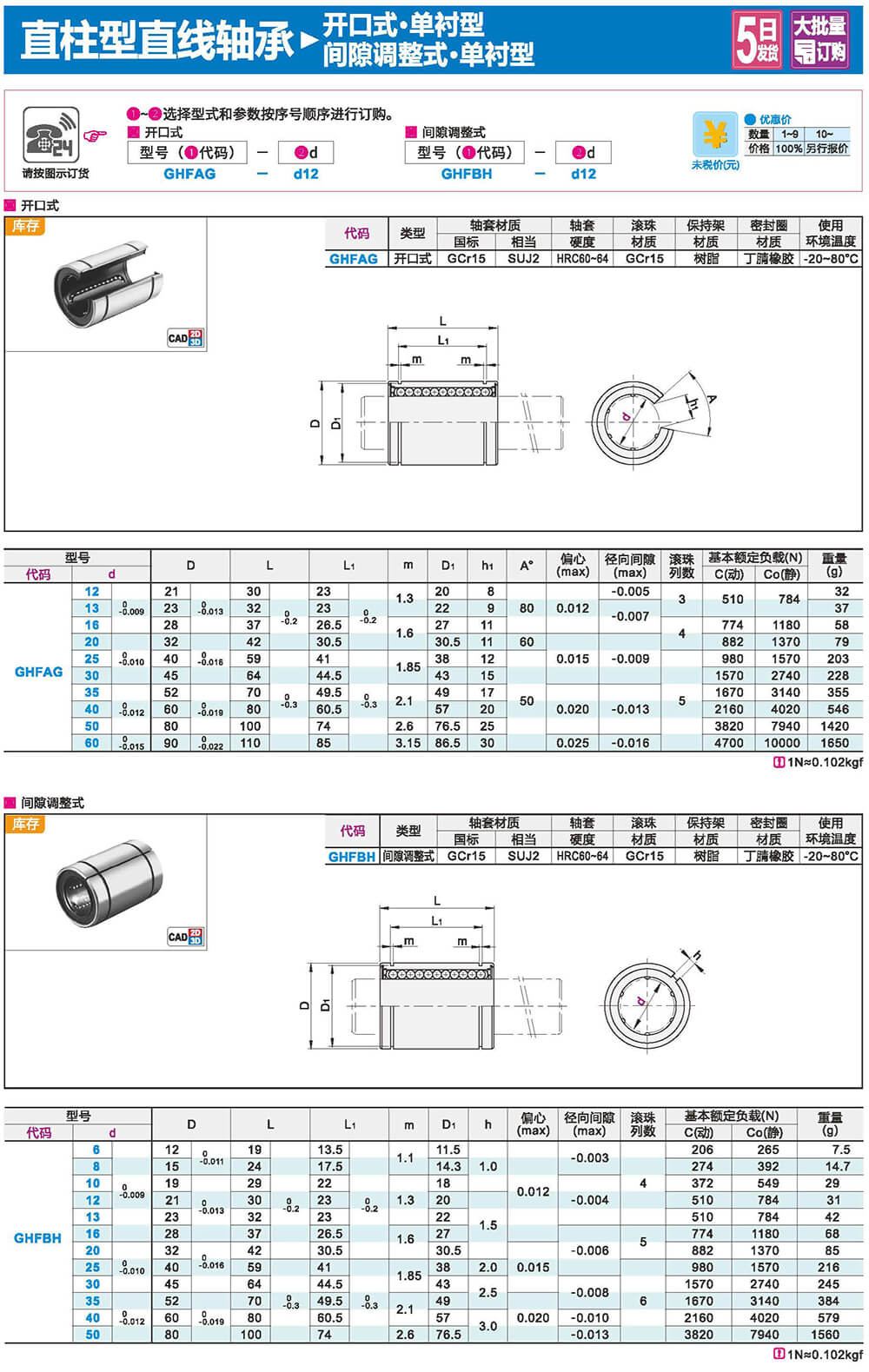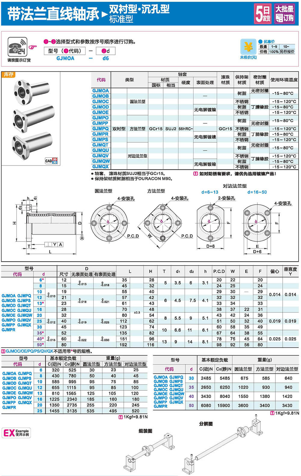 特点:低噪音、低摩擦、高精度、高寿命。由于滚珠和直线轴间为点接触,因此摩擦力小,运动精度高。